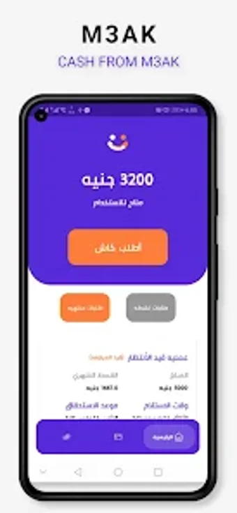معاك هي تطبيق محمول يمكن الوصول إليه على أجهزة Android. تم تصميم التطبيق لتوفير وسيلة سهلة للعملاء للوصول إلى الخدمات المختلفة التي تقدمها الشركة. يتيح التطبيق للعملاء عرض شروط وأحكام القرض، وكذلك عروض القروض. كما يمكن عرض الحالة المالية للعميل، ويمكن للعميل اختيار سحب أموال القرض في أي وقت.